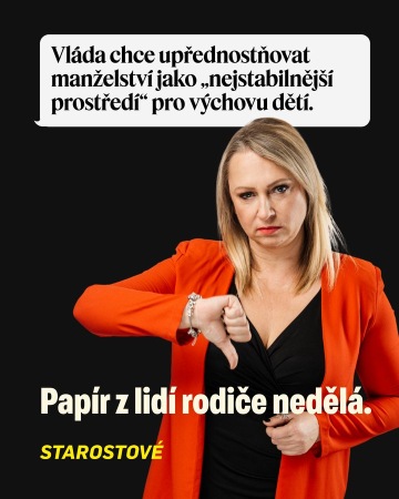 Nová vláda si do programového prohlášení napsala, že chce při demografických opatřeních upřednostňovat manželství jako „nejstabilnější prostředí“ pro výchovu dětí. Já s tím zásadně nesouhlasím. Stabilní prostředí pro dítě netvoří oddací list. Tvoří ho láska, bezpečí, čas, odpovědnost a funkční vztahy. Dnes žije mnoho mladých rodin v různých formách soužití – a starají se o své děti stejně dobře, často i lépe, než bychom čekali podle nějaké kolonky v tabulce. Pokud chceme skutečně řešit demografii, musíme podporovat všechny mladé rodiny, které chtějí vychovávat děti dostupným bydlením dostupnými školkami možností sladit práci a rodinu a jistotou, že stát stojí na jejich straně, ne že je rozděluje Rodinná politika má spojovat, ne nálepkovat. Děti si zaslouží podporu bez ohledu na to, jakou formu soužití si jejich rodiče zvolili.
